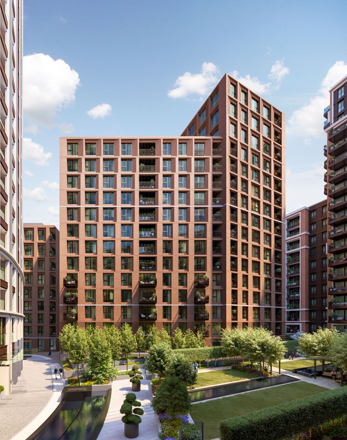 Following over two years of construction activity, the façade of our building will be complete. Inspired by the architectural vernacular of the nearby mansion blocks, it seamlessly blends traditional craftsmanship with contemporary architecture. Look closely at the balconies and building ornamentation and you’ll notice that they reflect the interior designs within St Mary’s Church on nearby Paddington Green.