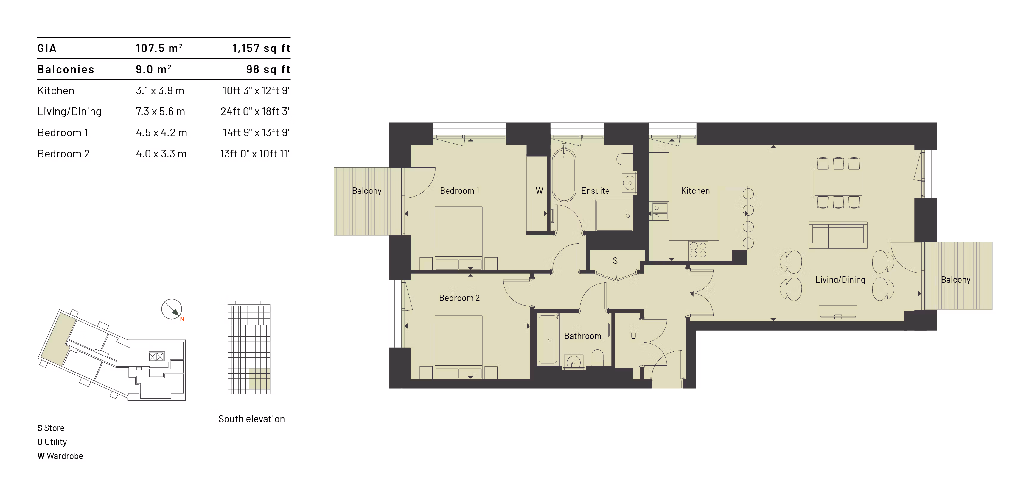 Our light-filled two-bedroom apartments range from 751 – 1,157 sq ft. Offering spacious open-plan living and elegant finishes, our apartments are surrounded by the tranquillity of our gardens.